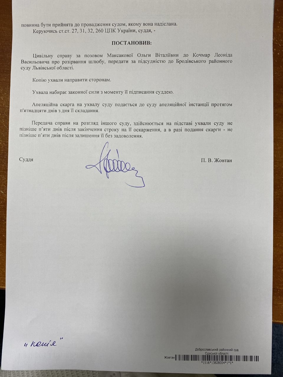 Увага, суд перейменовано з Комінтернівський районний суд Одеської області
